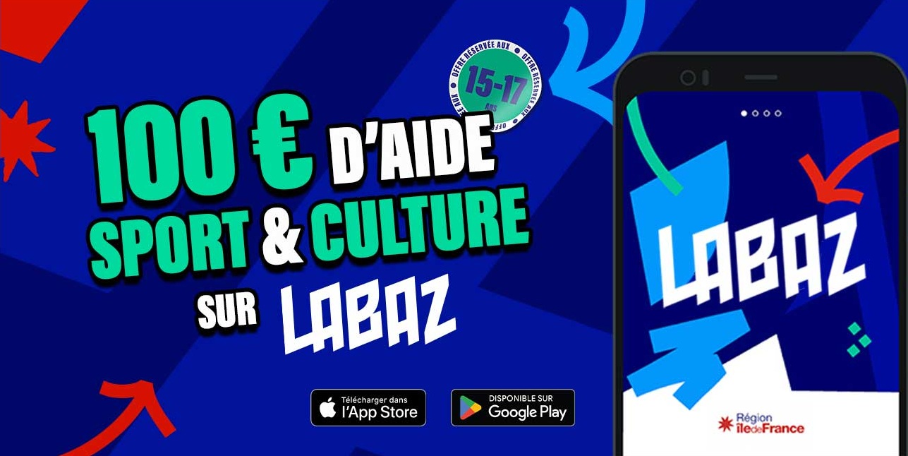 15-17 ans, téléchargez LABAZ et générez votre coupon sport & culture d'une valeur de 100€ à utiliser pour votre adhésion.